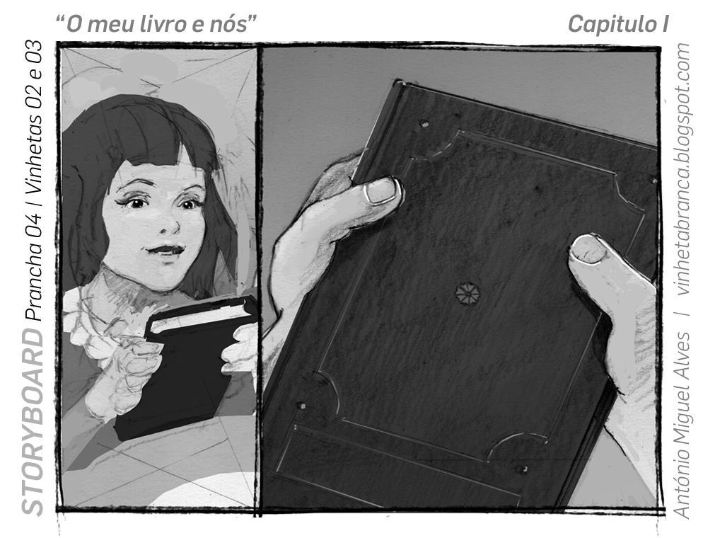 Quanto ao livro, este terá de aparecer antes do momento em que o pai o apanha para oferecer à menina (3.ª prancha na imagem acima).